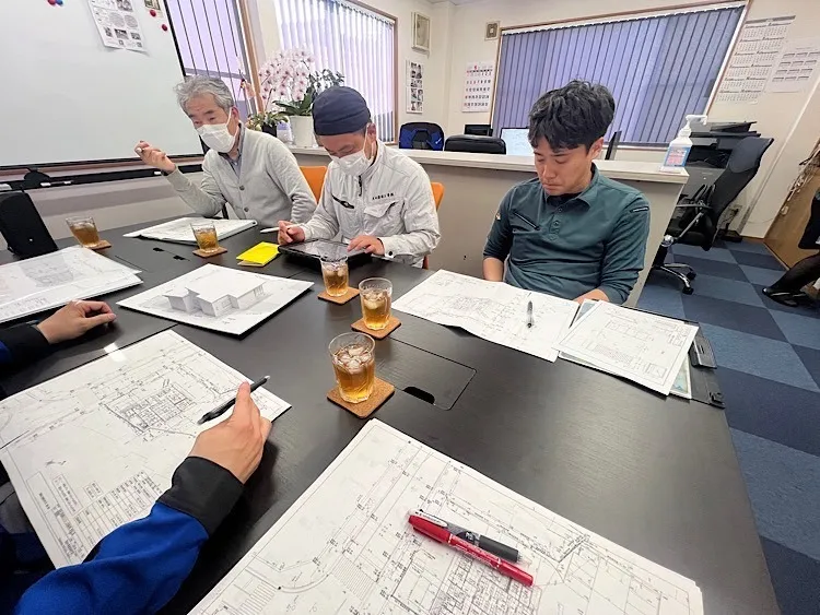 セレモニーホール事前打合せ 2025/05/14 今期夏着工建設事業の設計士様と設備関係業者様と打ち合わせをしました。 事前打ち合わせをする事により、円滑に建設事業を進める事ができ、尚且つ設備業者様の御協力により、設備図面作成もしてもらうので間違いありません。 日頃より、御尽力頂き有難うございます。