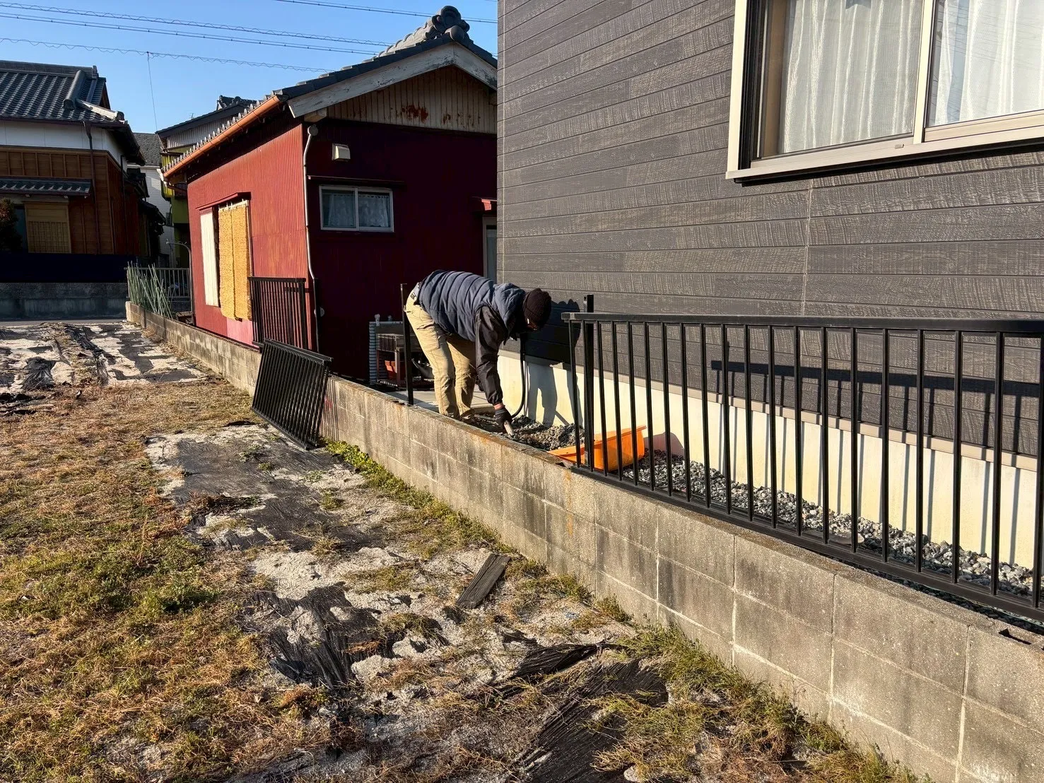 碧南市ブロック積替工事 2026/02/17 碧南市のお客様で既存のブロックが傾き始めている。と連絡があり、急いで駆けつけました。 すぐに積替えする事をご提案し、早急に工事にとりかかりました。 もうすぐで完成です!